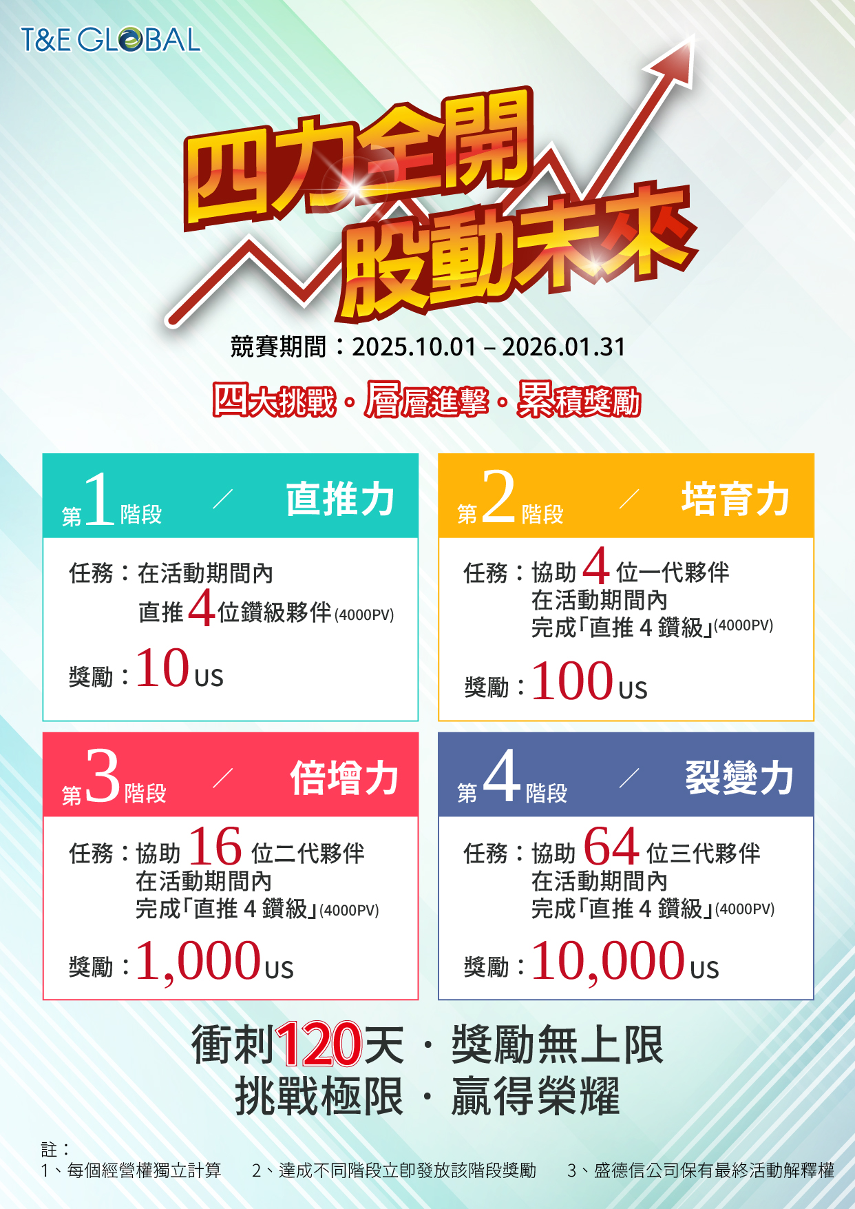 🔥T&E GLOBAL 四大挑戰!層層進擊!累積獎勵!🔥